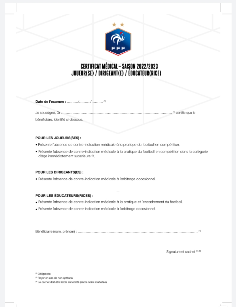 Certificat médical 2022/23
